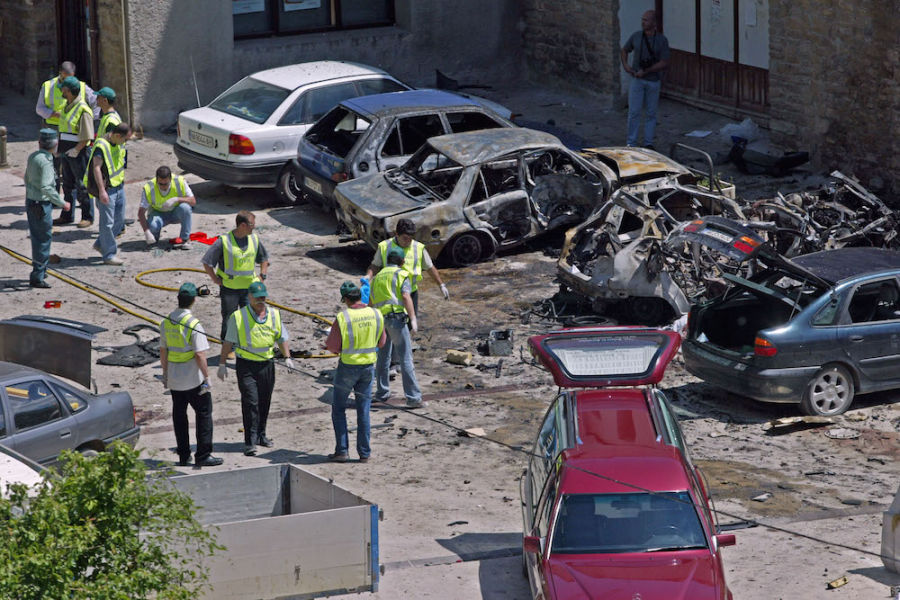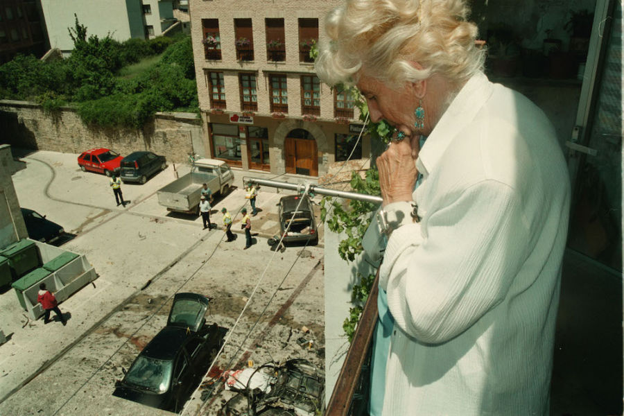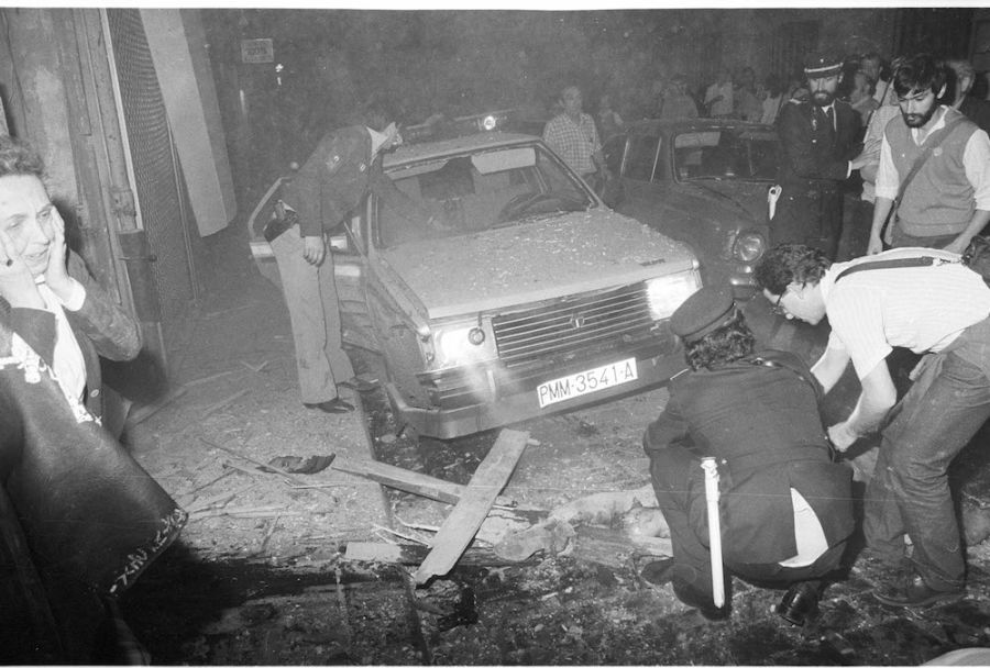 Poco antes de las nueve y media de la noche se recibió una llamada de auxilio en el 091 de Pamplona para que fuesen cuanto antes al número 16 de la Bajada de Javier, como se conoce en Pamplona a la calle Bajada de San Francisco Javier. Al parecer, y según esa llamada, un drogadicto estaba pegando a su madre. El comunicante urgió a que fuesen cuanto antes, porque la iba a matar. Cuando llegaron los dos coches zeta de la Policía Nacional al casco viejo, hizo explosión una bomba colocada en una bolsa de basura junto a una farmacia.