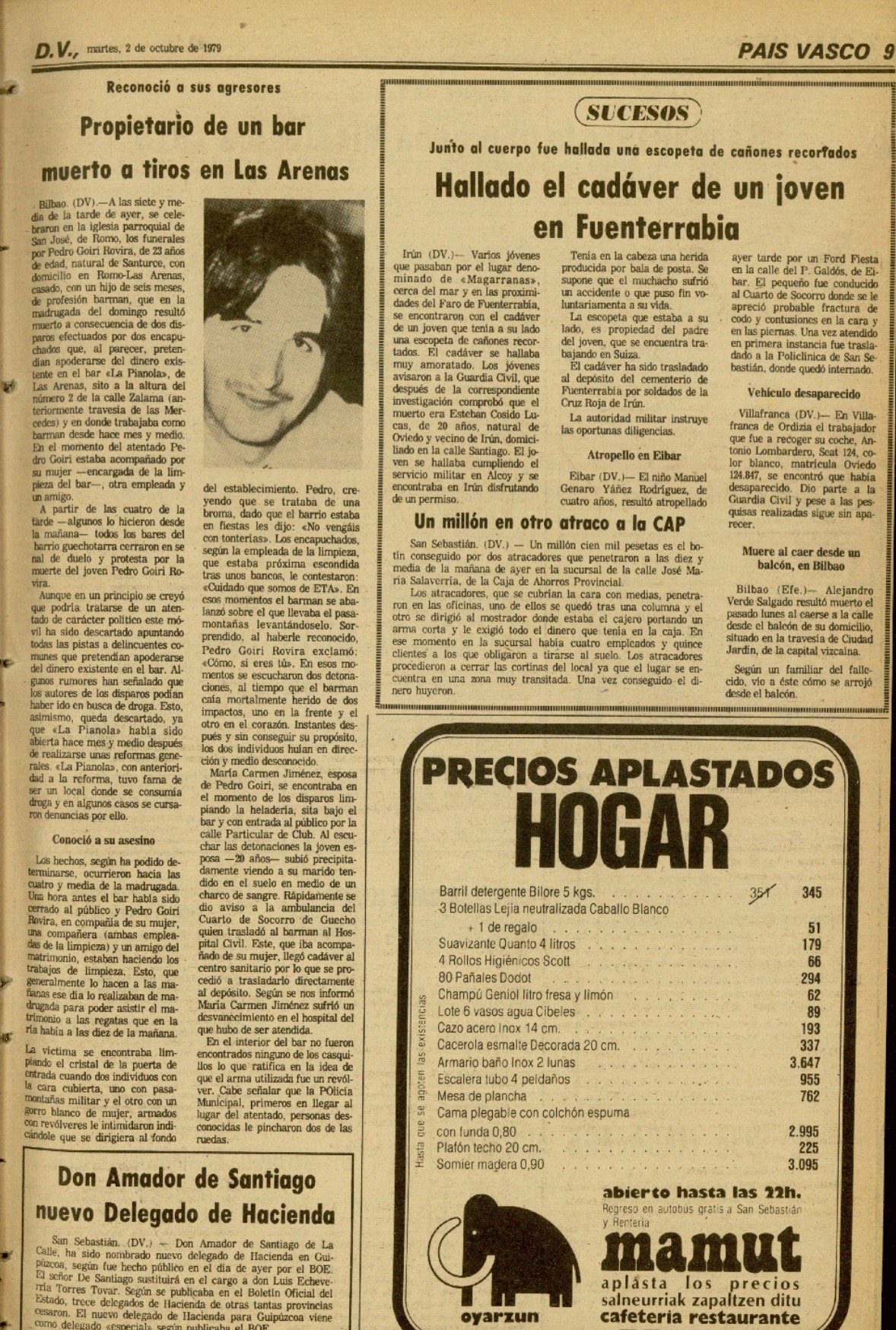 A las cuatro de la mañana del sábado 30 de septiembre de 1979, la banda terrorista ETA asesinaba en Guecho (Vizcaya) al camarero PEDRO GOIRI ROVIRA.