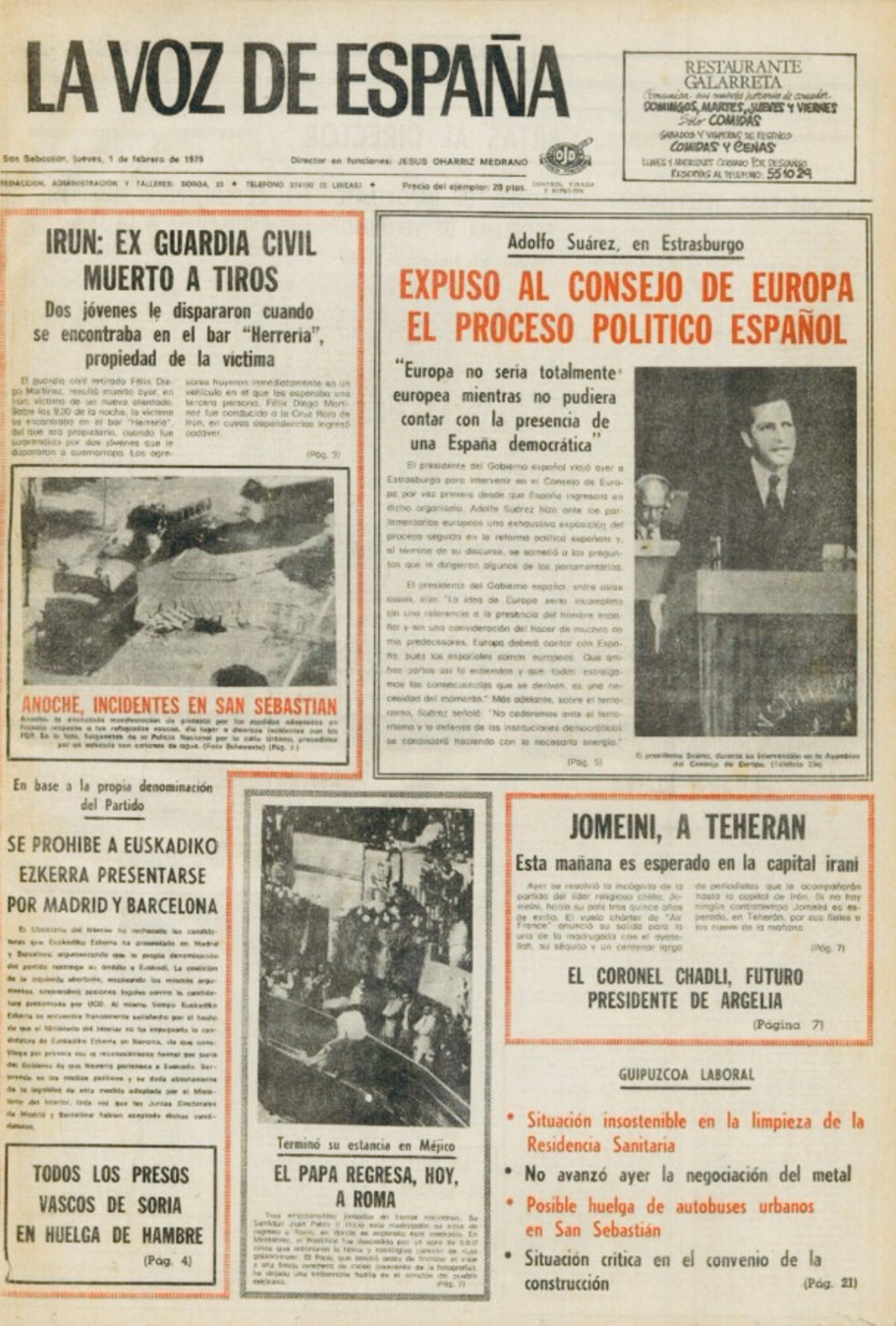 FRANCISCO DÍAZ DE CERIO GÓMEZ asesinado el 31 de enero de 1981 Bilbao.