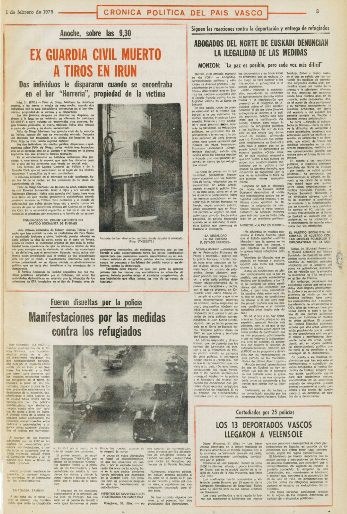 FÉLIX DE DIEGO MARTÍNEZ asesinado el 31 de enero de 1979 en Irún .