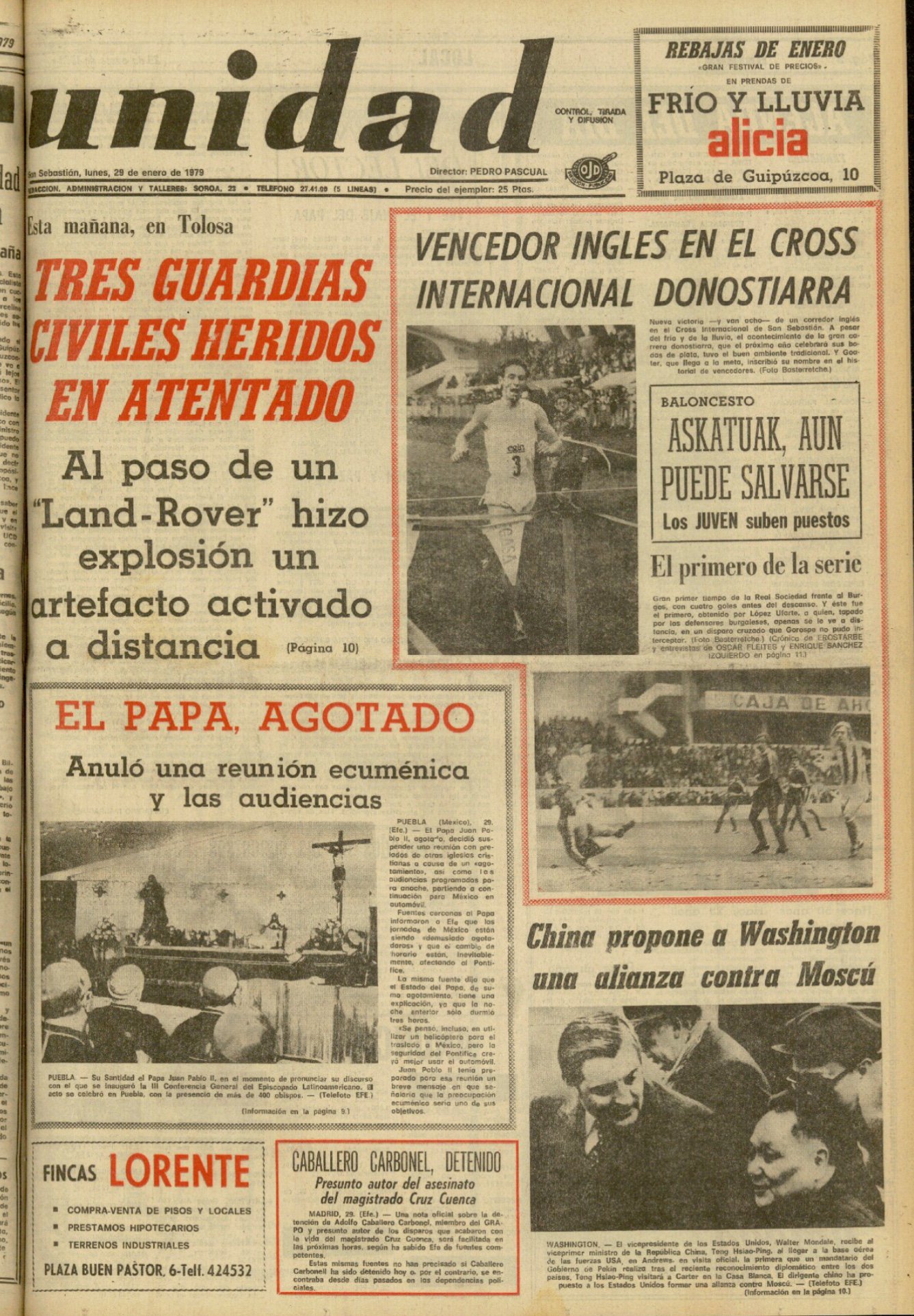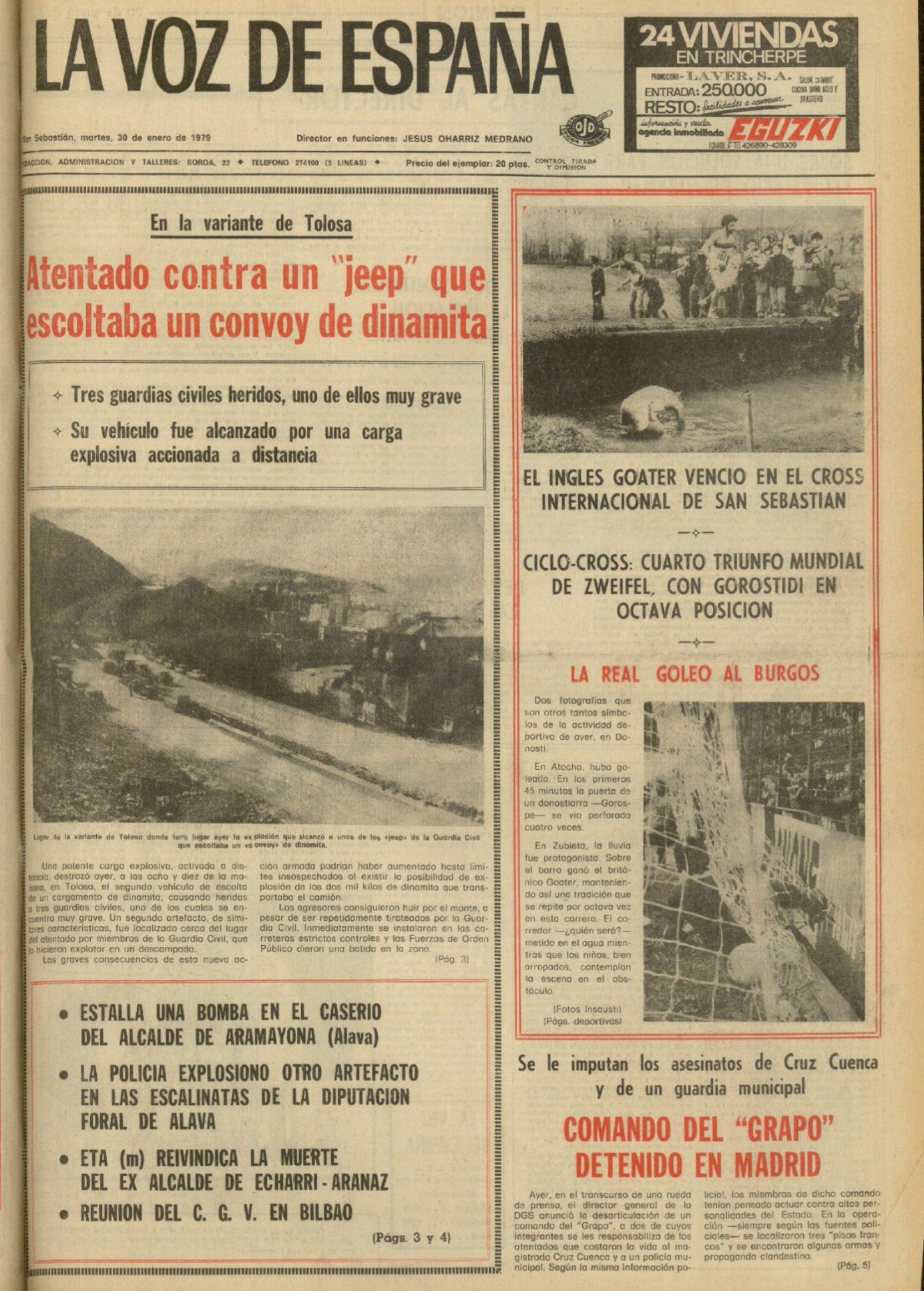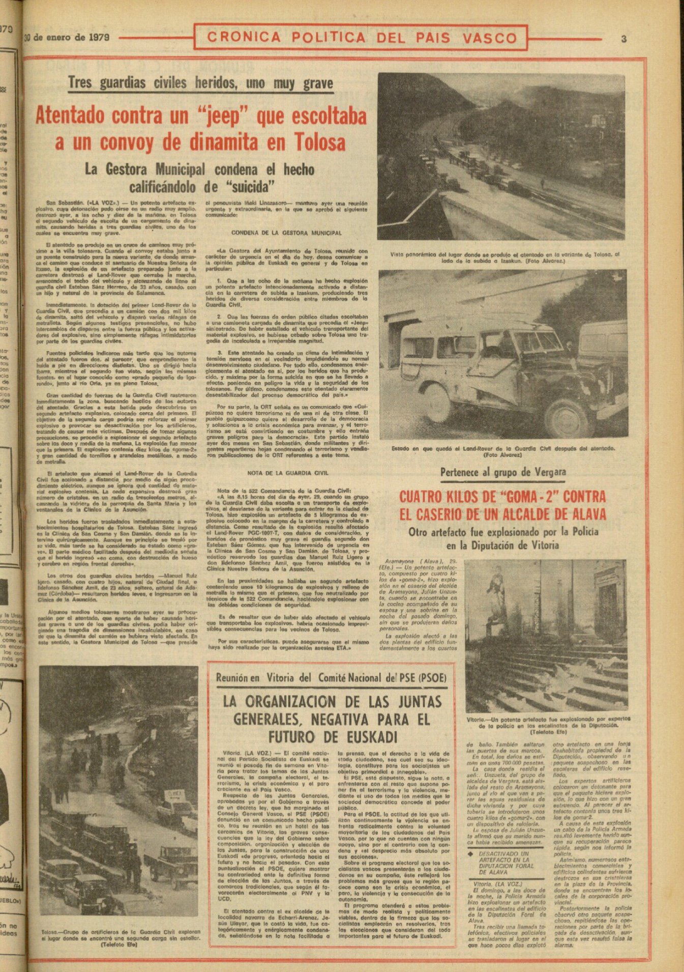 El 4 de febrero de 1979 fallecía el agente de la Guardia Civil ESTEBAN SÁEZ GÓMEZ como consecuencia de las graves heridas que sufrió en el atentado que la banda terrorista ETA cometió contra un convoy de la Guardia Civil en Tolosa (Guipúzcoa) el 29 de enero de ese mismo año.