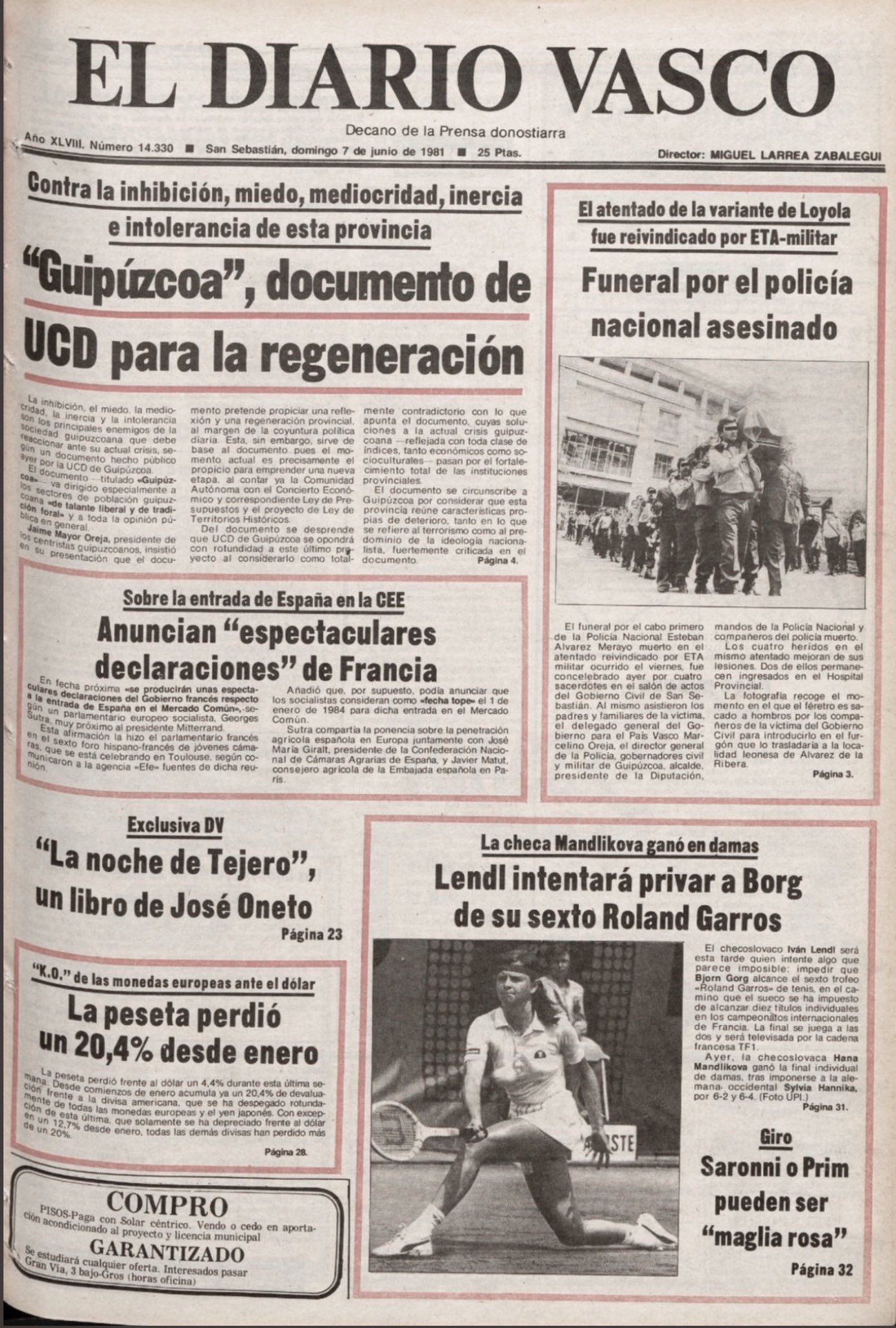 ESTEBAN ÁLVAREZ MERAYO asesinado el 5 junio de 1981 en San Sebastián.