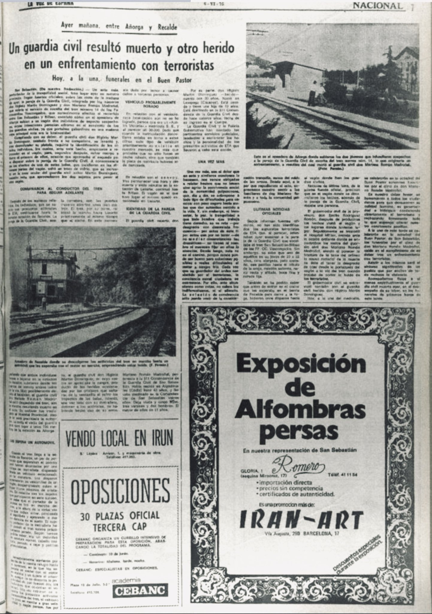 MARIANO ROMÁN MADROÑAL asesinado el 5 de junio de 1975 en Añorga.