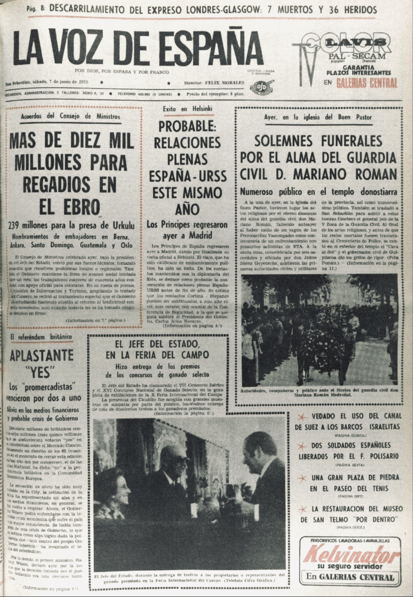 En la mañana del 5 de junio de 1975 fallece el guardia civil MARIANO ROMÁN MADROÑAL a consecuencia del accidente sufrido mientras prestaba servicio de escolta en un tren correo durante una operación de detención de dos etarras.
