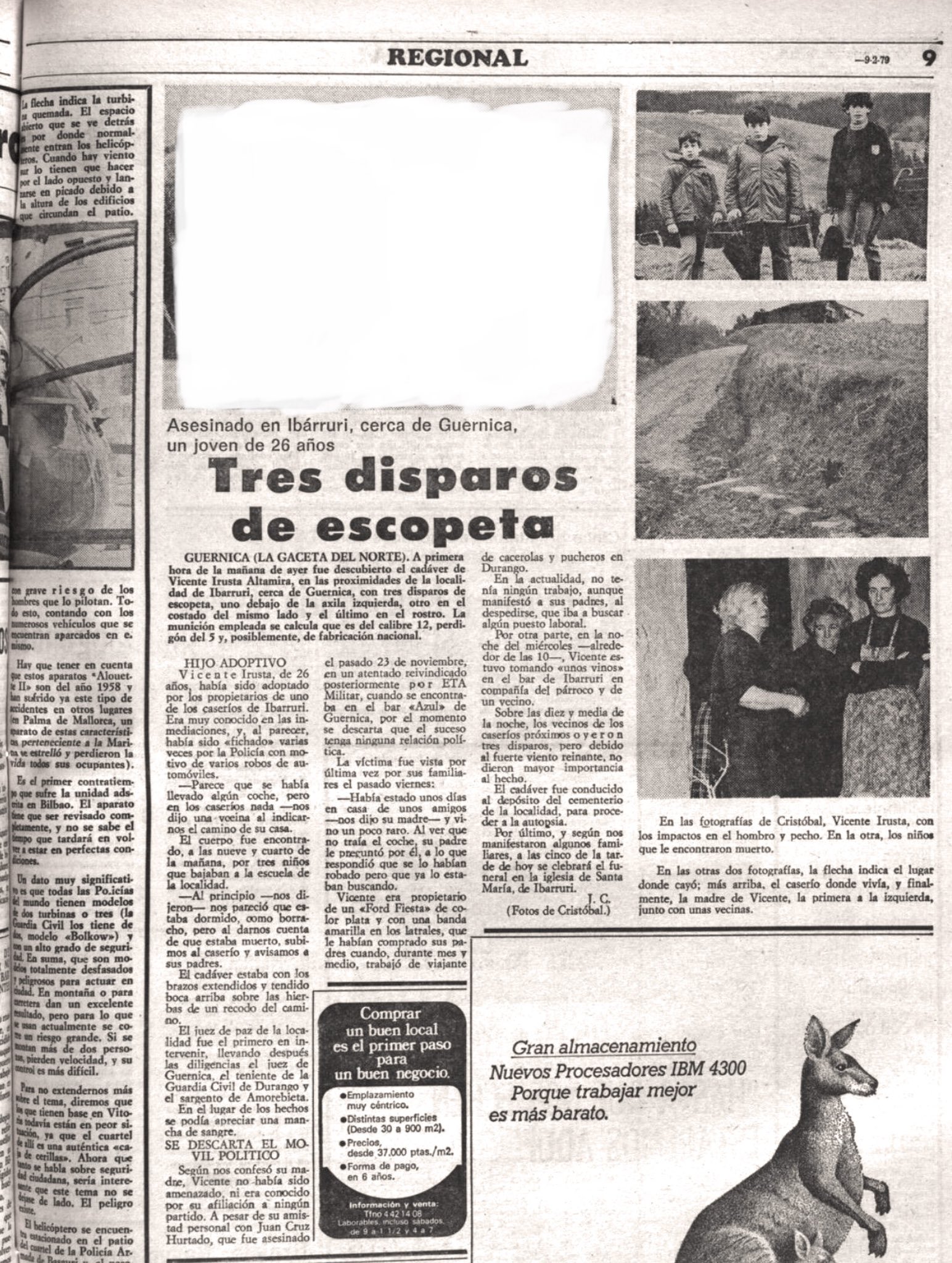 VICENTE IRUSTA ALTAMIRA asesinado el 7 de febrero de 1979 en Ibarruri.