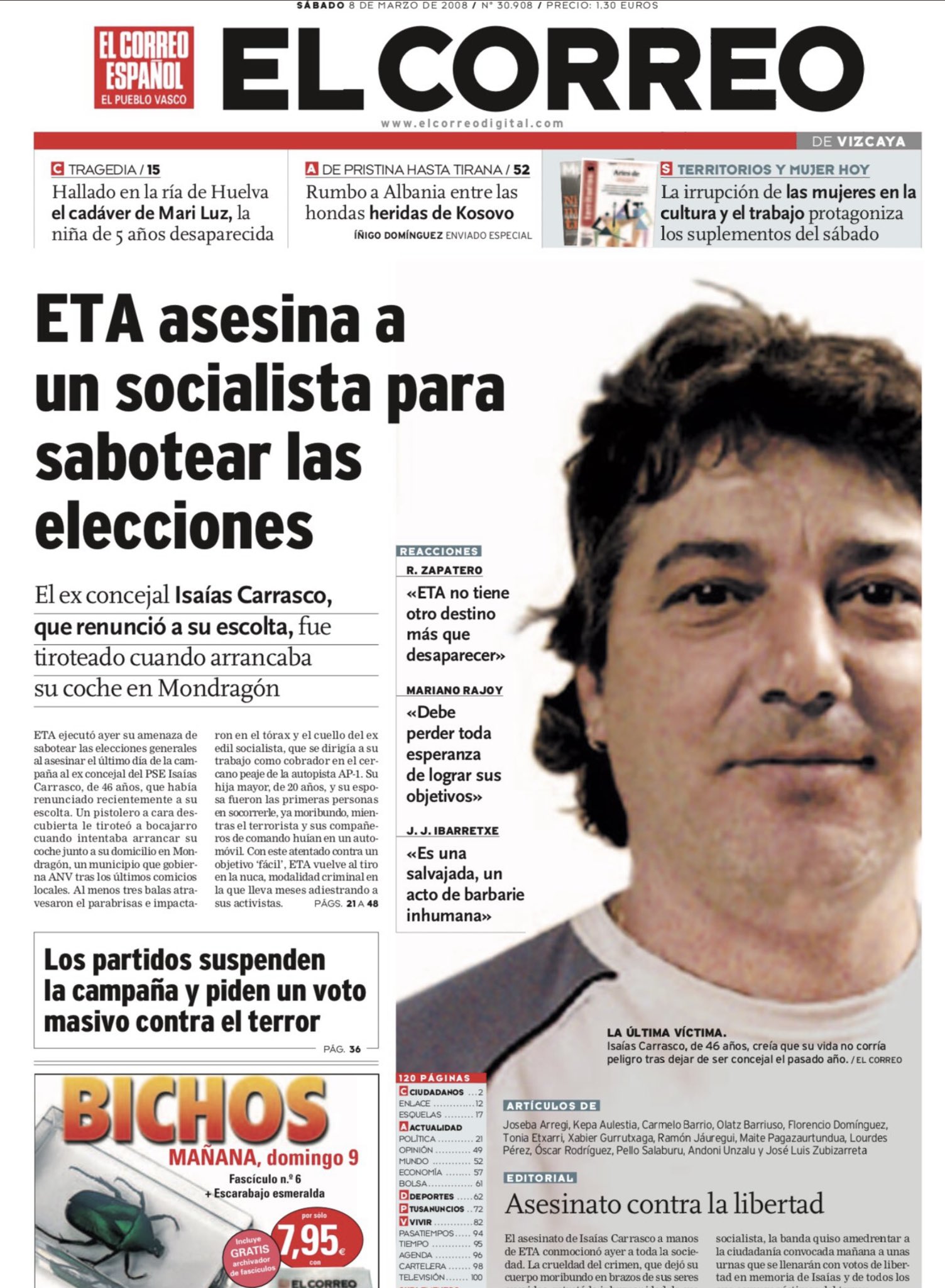 ISAÍAS CARRASCO MIGUEL Asesinado el 7 de marzo de 2008 en Mondragón.