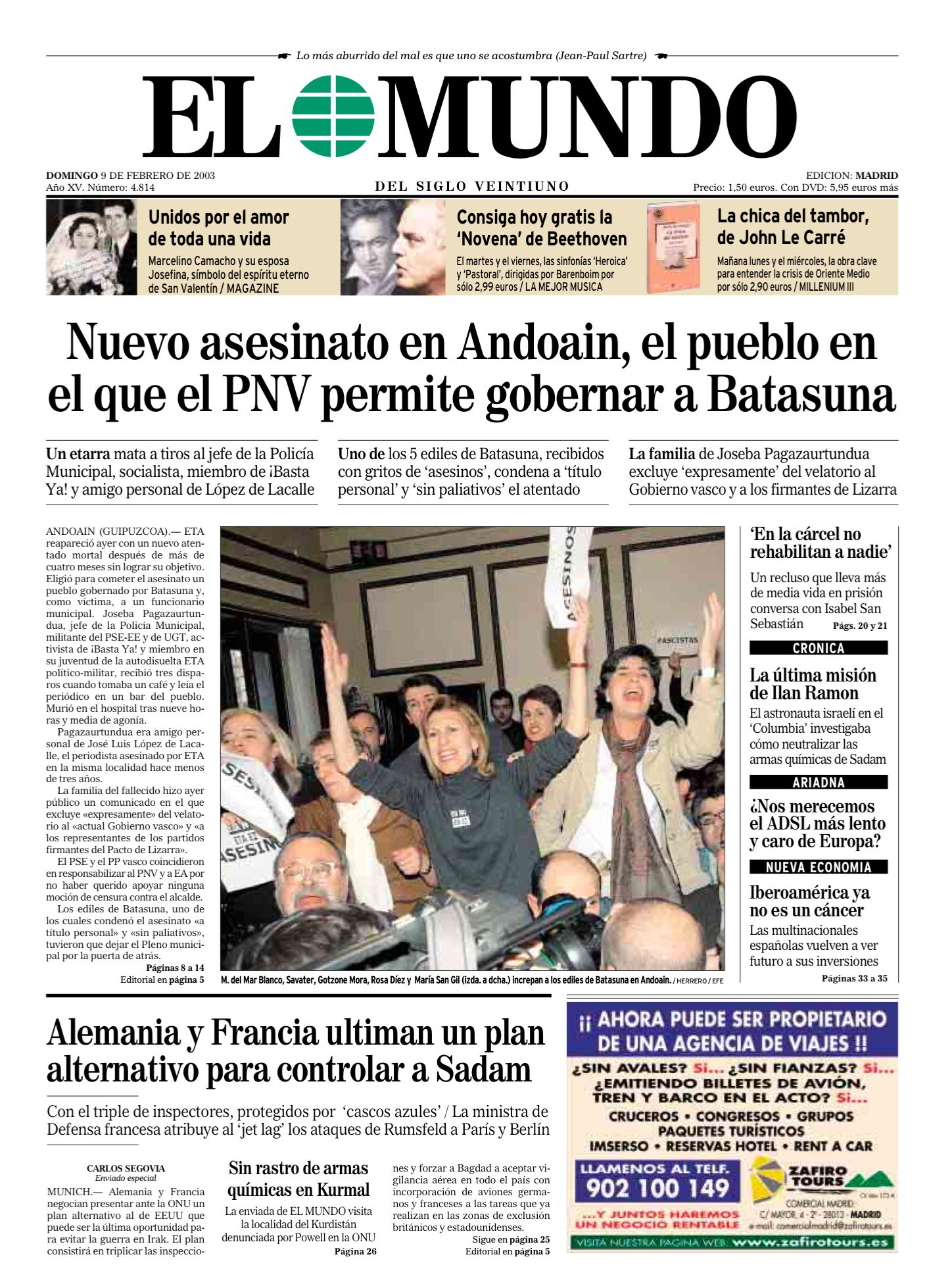 JOSEBA PAGAZAURTUNDÚA RUIZ asesinado el 8 de febrero de 2003 en Andoain.