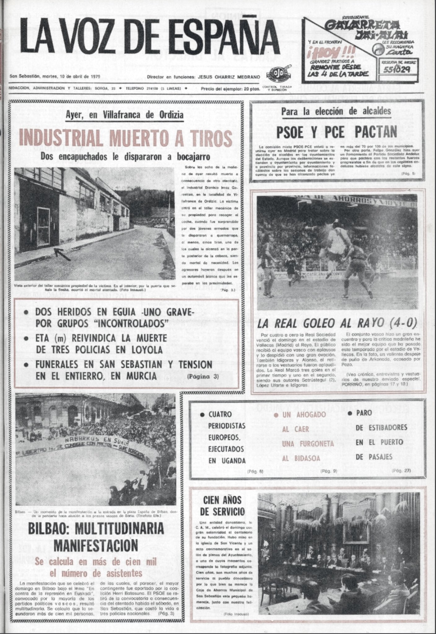 DIONISIO IMAZ GOROSTIZA asesinado el 9 de abril de 1979 en Villa Franca de Ordicia.