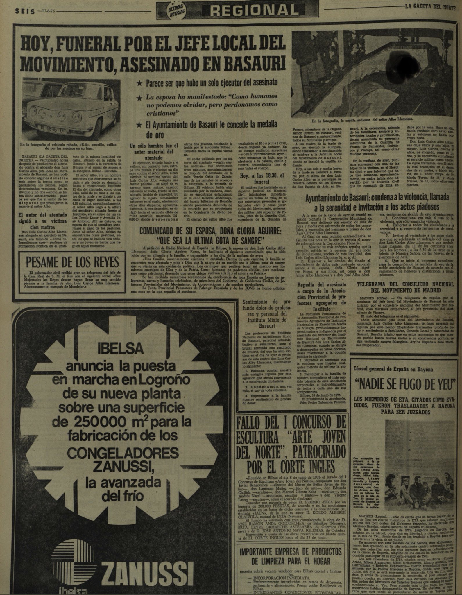 LUIS CARLOS ALBO LLAMOSAS asesinado el 9 de junio de 1976 en Basauri.