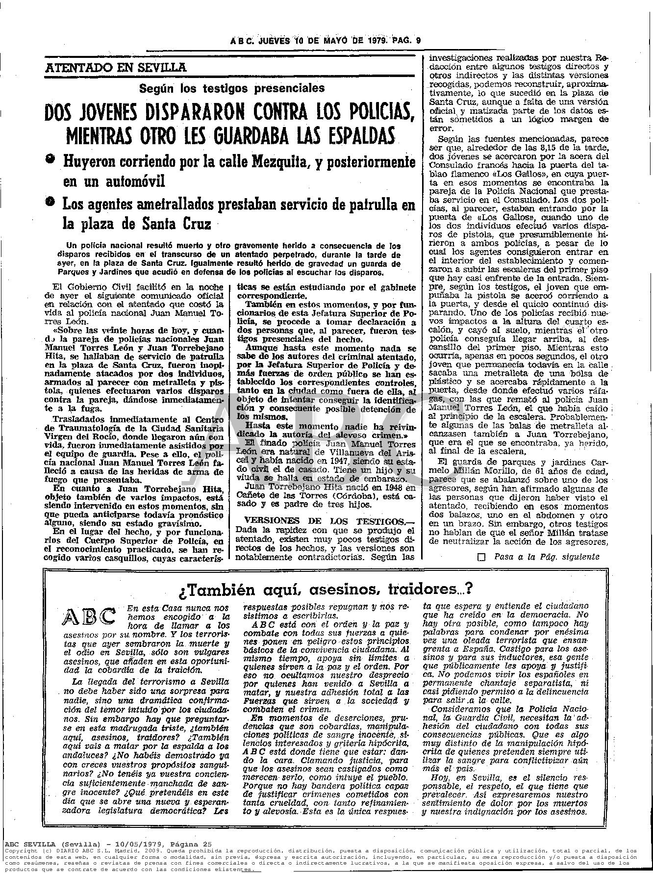 JUAN MANEL TORRES LEÓN, asesinado por el GRAPO en Sevilla el 9 de Mayo de 1.979