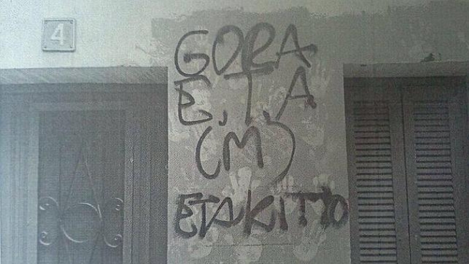 REDACCIÓN VCT.- En la madrugada de este domingo, varios proetarras pintaron ‘goras’ a ETA en la casa de la víctima del terrorismo Jesús Ulayar, donde fue asesinado con cinco disparos en 1979 en la localidad navarra de Echarri-Aranaz. Dicho municipio se encuentra actualmente gobernado por Bildu.